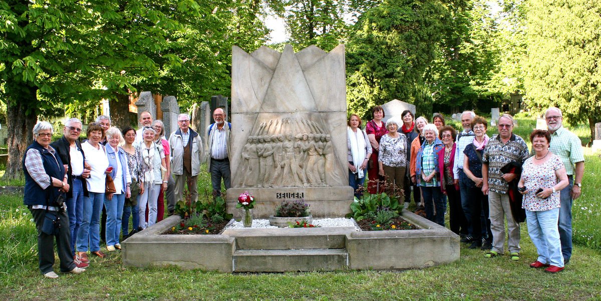 Auf dem Weg nach Aussig/Ústí nad Labem machte die Reisegruppe Station in Teplitz/Teplice, wo Waldemar Deischl, Reiseleiter und Vorsitzender der Seliger-Gemeinde Ortsgruppe München, den ersten Vorsitzenden der Deutschen Sozialdemokratischen Arbeiterpartei (DSAP), Josef Seliger (1870-1920), an dessen Grab würdigte. Mit dem deutschen Volkslied Lied „Die Gedanken sind frei“ gedachte die Gruppe dem Namensgeber der Seliger-Gemeinde.
