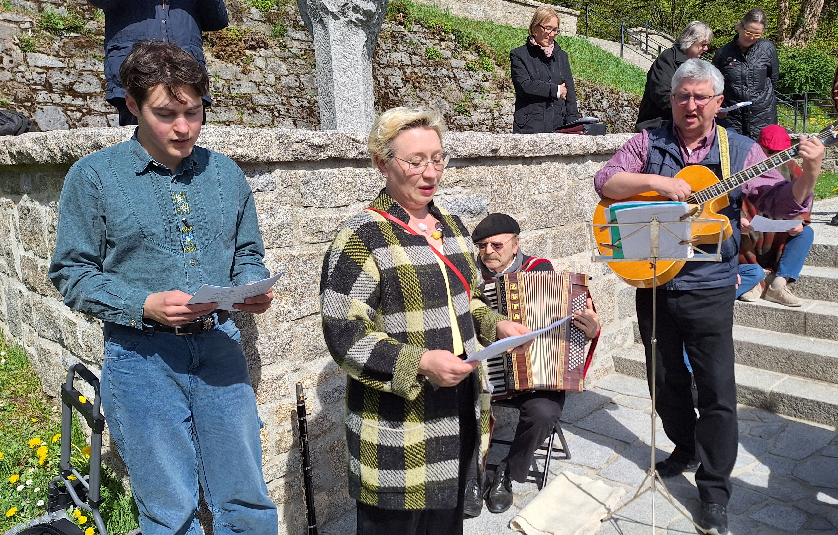 Abschließend teilte das Vorstandsmitglied der Seliger-Gemeinde aus Tschechien, Dr. Libor Rouček, MdEP.a.D., seine Gedanken zum Thema „80 Jahre Kriegsende“ mit den Anwesenden. Musikalisch begleitet wurde die stimmungsvolle Gedenkfeier von Peter Heidler und Herbert Schmied, die mit den Liedern „Sag nicht keinmal (jidisches Lied/instrumental), „Mein Vater wird gesucht“, „Unsterbliche Opfer“ und den all bekannten „Moorsoldaten“ den richtigen Ton trafen.