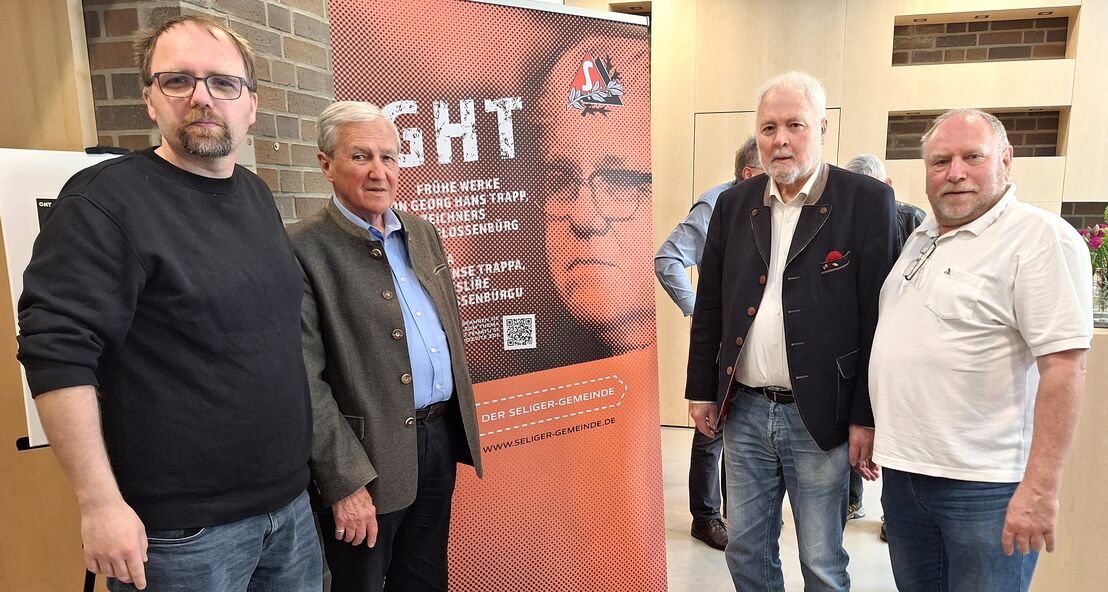 Anläßlich des Frühjahrsseminars der Seliger-Gemeinde in Bad Alexandersbad präsentierten die Ausstellungsmacher Dr. Thomas Oellermann und Rainer Pasta erstmals die im Rahmen des Projektes „Nie wieder 2025“ entstandene Ausstellung mit 13 frühen Werken des sudetendeutschen Sozialdemokraten Georg Hans Trapp erstmals der Öffentlichkeit.