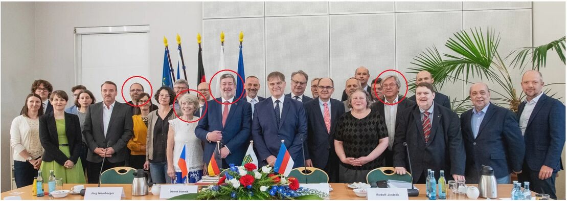 Die Seliger im Deutsch-Tschechischen Gesprächsforum: Co-Vorsitzender Jörg Nürnberger (12. v.l.), Bundesvorsitzende Helena Päßler (11.v.li.), ehem. Vorsitzender Libor Rouček (5.v.re.) und Dr. Th. Oellermann (6.v.li.) (Foto: Deutsch-Tschechisches Gesprächsforum)