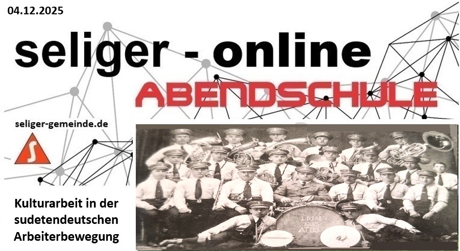 Beim Thema „Kunst und Kultur der sudetendeutschen Sozialdemokratie“ denkt man zuerst an die einzelen Akteure und Akteurinnen die Kunst und Kultur produziert haben, u.a. an den Illustrator Georg Hans Trapp, den Literaten Josef Hofbauer oder die junge Erna Haberzettl, die Gedichte geschrieben hat. In der Abendschule zum 4. Dezember 2025 hat Dr. Thomas Oellermann einen größeren Überblick zur Kulturarbeit in der sudetendeutschen Arbeiterbewegung gegeben.