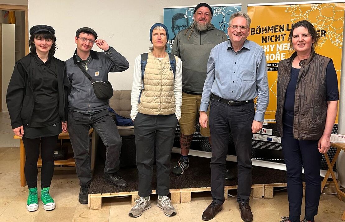 Referent Ulrich Miksch (2.v.re.) mit Steffen Richter (3.v.re.), dem Vorsitzenden des AKUBIZ e.V., der die Ausstellung in den Vereinsräumen zeigt, mit einigen Gästen.