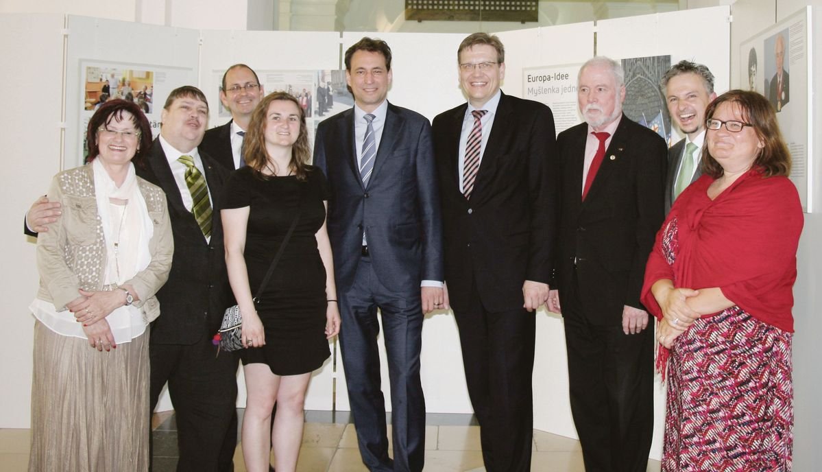Freuen sich über eine gelungene Ausstellung: (v.l.) Christa Naaß - Generalsekretärin d. Sudetendeutschen Rat, Bernd Posselt - Volksgruppensprecher, Dr. Christoph Israng - Dt. Botschafter in Prag, Maya Konstantinov - Antikomplex, Georg Eisenreich - Bayerns Europaminister, Steffen Hörtler - Stellvertretender SL-Bundesvorstandsvorsitzender und Bayerns SL-Landesobmann, Albrecht Schläger - Ko-Vorsitzender der Seliger-Gemeinde. Dr. Hans-Diether Dörfler - Agentur Birke & Partner, sowie Konsulin Lydie Holinková - Generalkonsulat d. Tschechischen Republik München.