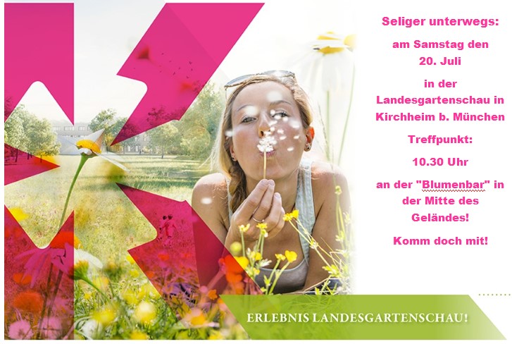 Wir treffen uns am Samstag um 10.30 Uhr in der Mitte des LAGA-Geländes in der "Blumenbar". Da Zug- und Autofahrer an unterschiedlichen Eingängen eintreten, macht es keinen Sinn sich vor der LAGA zu treffen - auch sind wir zu wenige um ein Gruppenticket zu lösen - also jeder auf eigene Kosten: Es gibt aber verschiedene Nachlässe! Bitte am Eingang fragen!