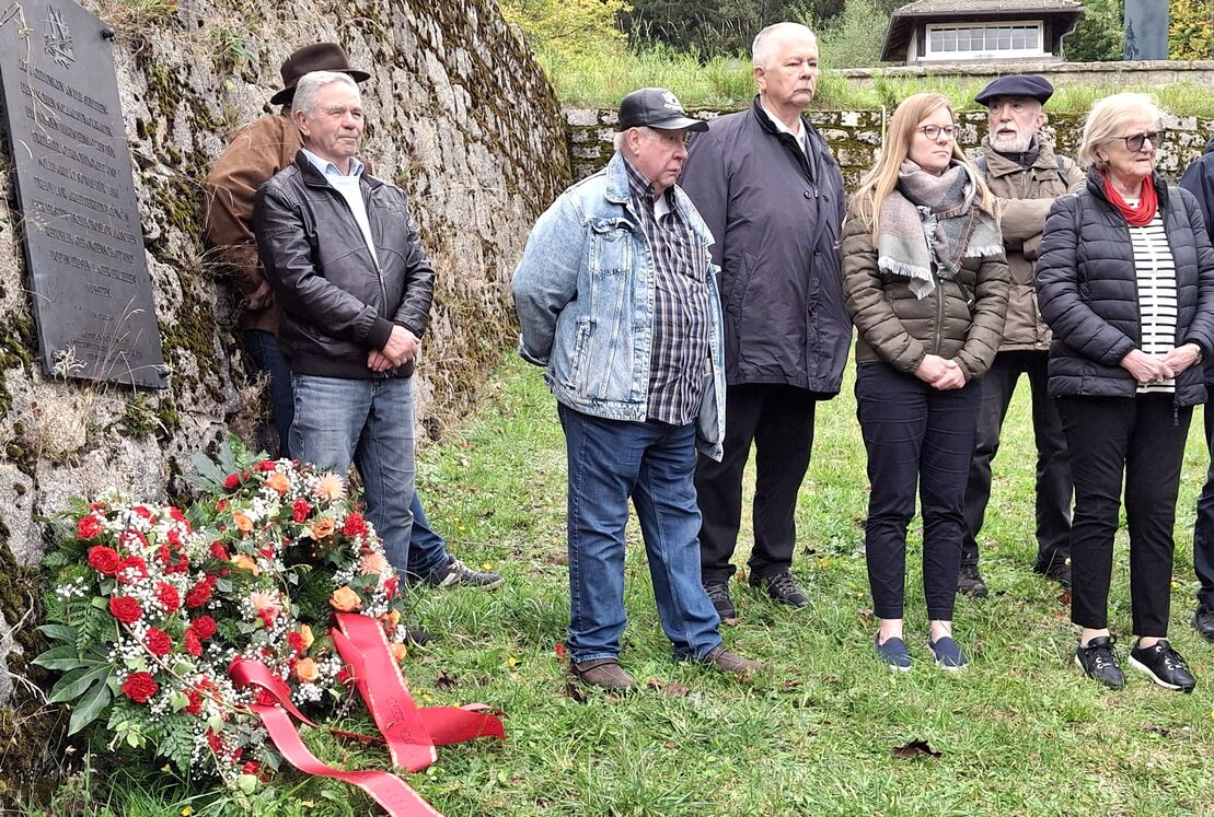 Am Freitag, den 27. September legte die SPD-AG 60plus in der KZ-Gedenkstätte Flossenbürg zwei Kränze bei der Gedenktafel der Seliger-Gemeinde nieder: „Wir verneigen uns vor den Opfern von Krieg und Terror!“ - mit dabei u.a. der Bezirksvorsitzende AG 60plus (Opf) Reinhold Strobl (4.v.re.), MdB/MdL a. D., Erika Faul (re.) für die Nürnberger AG 60plus und die Landtagsabgeordnete Nicole Bäumler (3.v.re.).