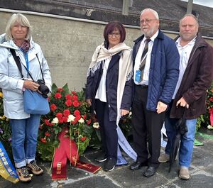 Bundesvorsitzende Christa Naaß legte mit weiteren Mitgliedern der Seliger-Gemeinde den Kranz nieder