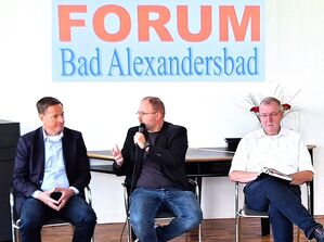 In der Podiumsdiskussion im „Alexandersbader Forum“ standen Martin Rozumek, Leiter der Organisation zur Hilfe von Flüchtlingen Prag, und Ilko Kessler, Landeskoordinator Migration und Arbeitsmarktintegration, der Arbeiterwohlfahrt Sachsen den Zuhörerinnen und Zuhörern Rede und Antwort zum Thema Migration. Moderiert wurde die Runde von Dr. Thomas Oellermann.