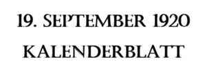 Der 19. September des Jahres 1920 fiel auf einen Sonntag in der 38. Kalenderwoche. Im Schaltjahr 1920 mit 366 Tagen war er der 263. Tag des Jahres. Personen, die am 19. September geboren wurden, tragen das Sternzeichen Jungfrau.