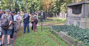 Am Freitagvormittag (der Besuch eines Friedhofs ist am Sabbat verboten) ging es bei strahlendem Sonnenschein in die Kühle der Friedhöfe Prags. Die erste Station, der Neue Jüdische Friedhof im Stadtteils Žižkov, ist einer der beiden bekanntesten jüdischen Friedhöfe der Stadt und der größte jüdische Friedhof in Tschechien. Er wurde am 6. Juli 1890 eröffnet.