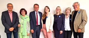 Brachen am Sudetendeutschen Tag eine Lanze für ein faires, soziales und demokratisches Europa: (v.l.) Dr. Reinhard Schaupp, Christa Naaß, Hannes Heide, Ronja Endres, Natalie Pamlik MdB, Helena Päßler und Libor Rouček