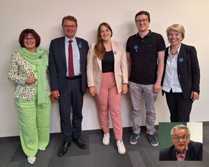 V.l.n.r.: Gerhard Barenbrügge, Vorsitzender der Gruppe München-Dachau, Bernd Wegmann, Co-vorsitzender der Gruppe Waldkraiburg, Gert Hilger, Mathilde Pollack-München, Peter Schmid-Rannetsperger, Vorsitzender der Gruppe Waldkraiburg, Dr. Christian Reppe-Gruppe Memmingen.