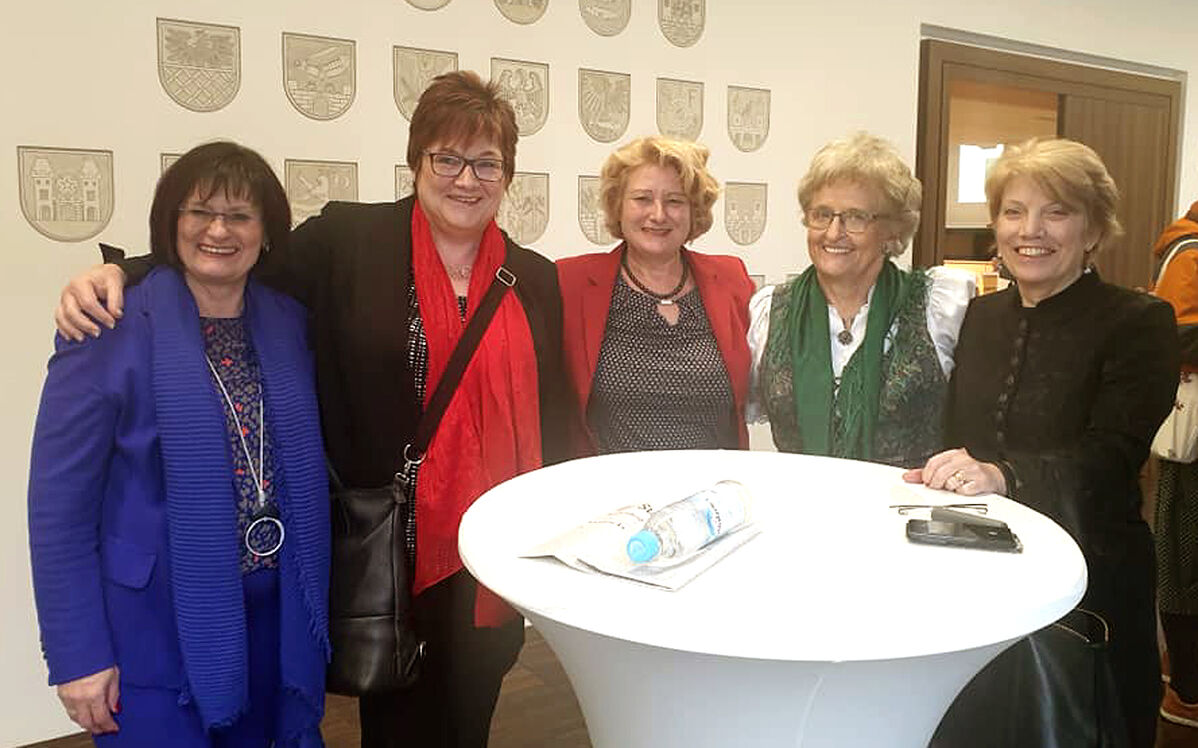 Festakt zur Verleihung der Kulturellen Förderpreise im neu gestalteten und modernisierten Adalbert-Stifter-Saal des Sudetendeutschen Hauses mit (v.l.) Christa Naaß, Birgit Kern, Rita Hagl-Kehr, MdB, Renate Slawik und Bundesvorsitzender Helena Päßler