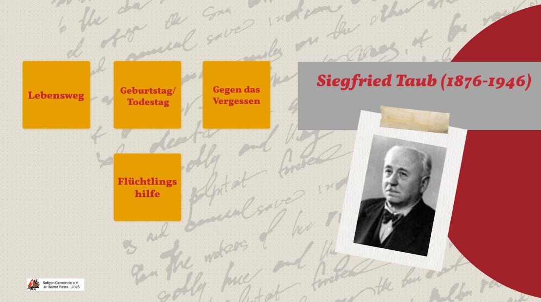 Die Seliger-Gemeinde erinnert zu seinem 150. Geburtstag am 11.01.1876 an Siegfried Taub